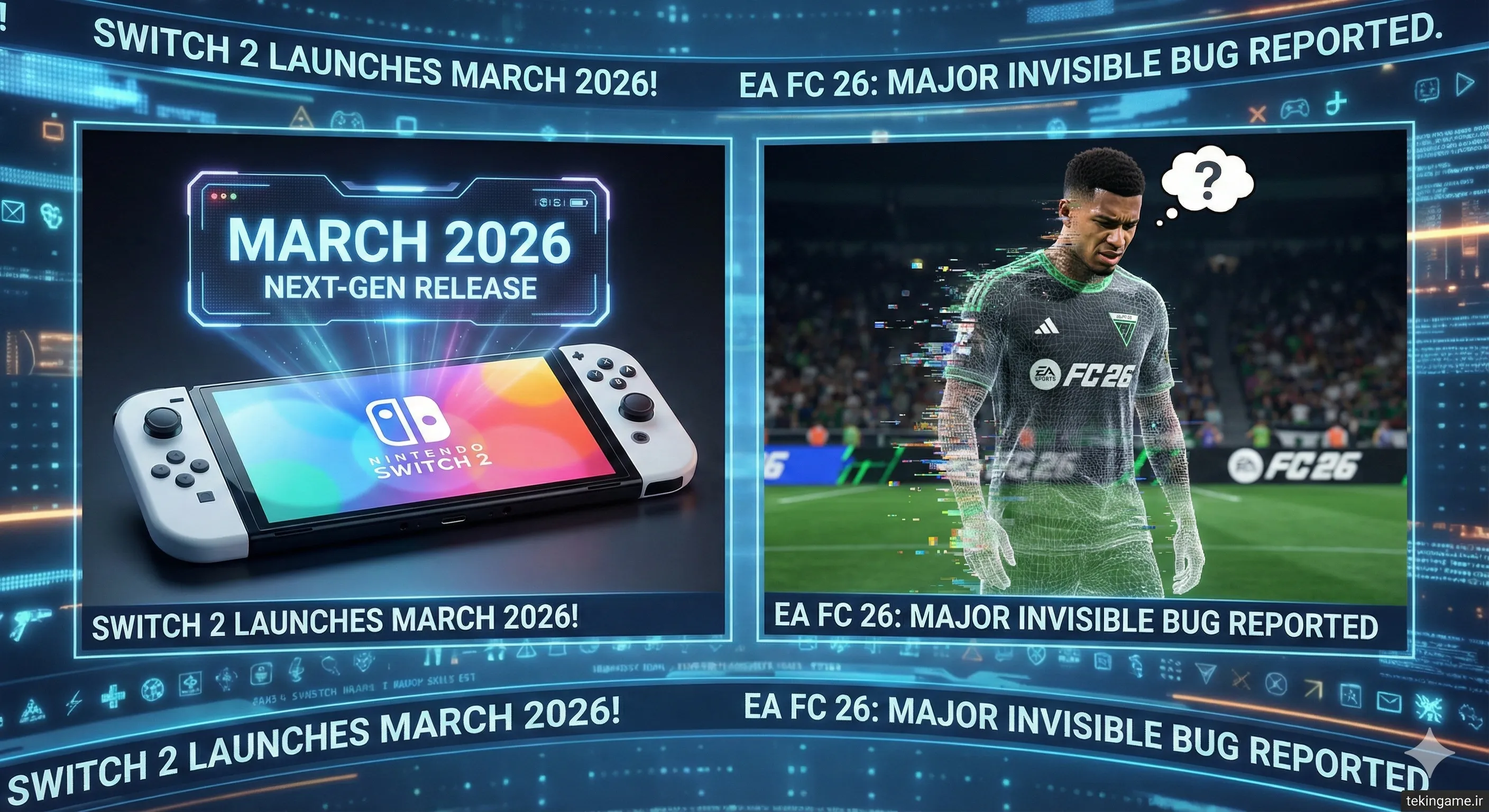 نشره المساء من Tekin Plus: تسریب موعد إصدار نینتندو سویتش 2 + أخطاء EA FC 26 الغریبه تغضب اللاعبین