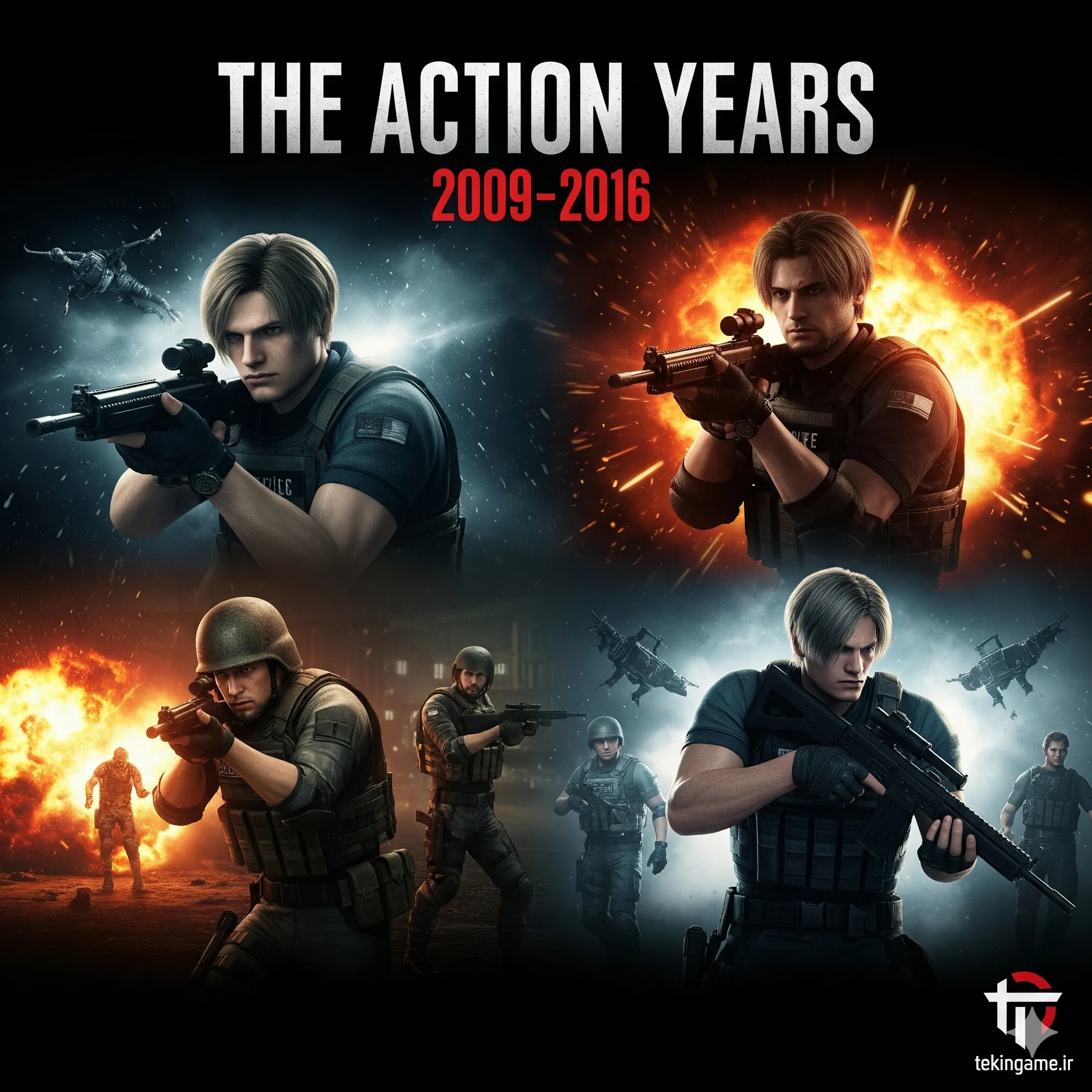 موفقیت RE4 باعث شد Capcom تصمیم بگیرد سری را بیشتر به سمت اکشن ببرد. Resident Evil 5 (۲۰۰۹) با تمرکز بر co-op و مبارزات اکشن، اگرچه از نظر فروش موفق بود، اما روح survival horror سری را از دست داد. Resident Evil 6 (۲۰۱۲) این روند را به افراط رساند و با چهار کمپین مختلف که هر کدام سبک متفاوتی داشتند، تجربهای پراکنده و گیجکننده ارائه داد. این بازی اگرچه فروش خوبی داشت، اما انتقادات شدیدی از طرفداران و منتقدان دریافت کرد. Resident Evil: Operation Raccoon City و سایر spin-offهای این دوران نیز نتوانستند انتظارات را برآورده کنند.