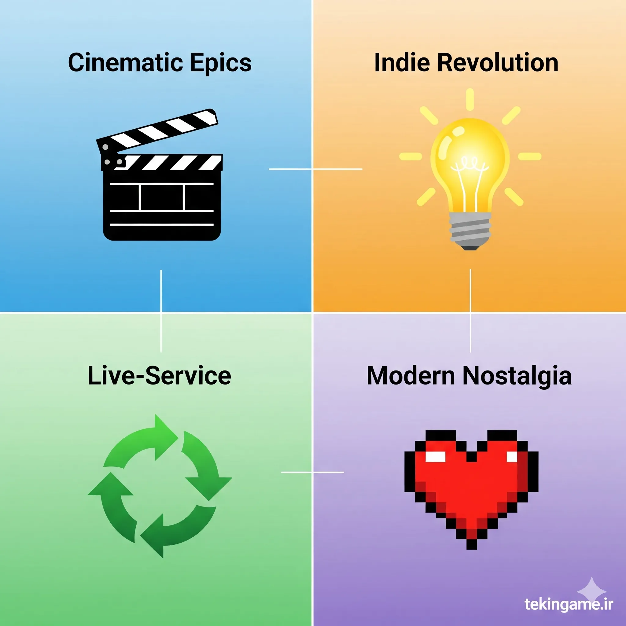با نزدیک شدن به پایان سال میلادی، هیجان برای بزرگترین شب صنعت بازی، یعنی The Game Awards، به اوج خود میرسد. انتخاب "بهترین بازی سال" (Game of the Year) همیشه بحثبرانگیز و جذاب است. اما اگر از رقابت بین طرفداران فراتر برویم، نامزدهای هر سال مانند یک آینه عمل میکنند که تصویری واضح از وضعیت فعلی و مسیر آینده صنعت گیم را به ما نشان میدهند. موفقیت هر بازی، نشاندهنده یک روند (Trend) قدرتمند در بازار است. در این تحلیل در تکین پلاس، ما به بررسی نامزدهای احتمالی GOTY 2025 میپردازیم تا بفهمیم آیندهای که منتظر ماست، چگونه خواهد بود.