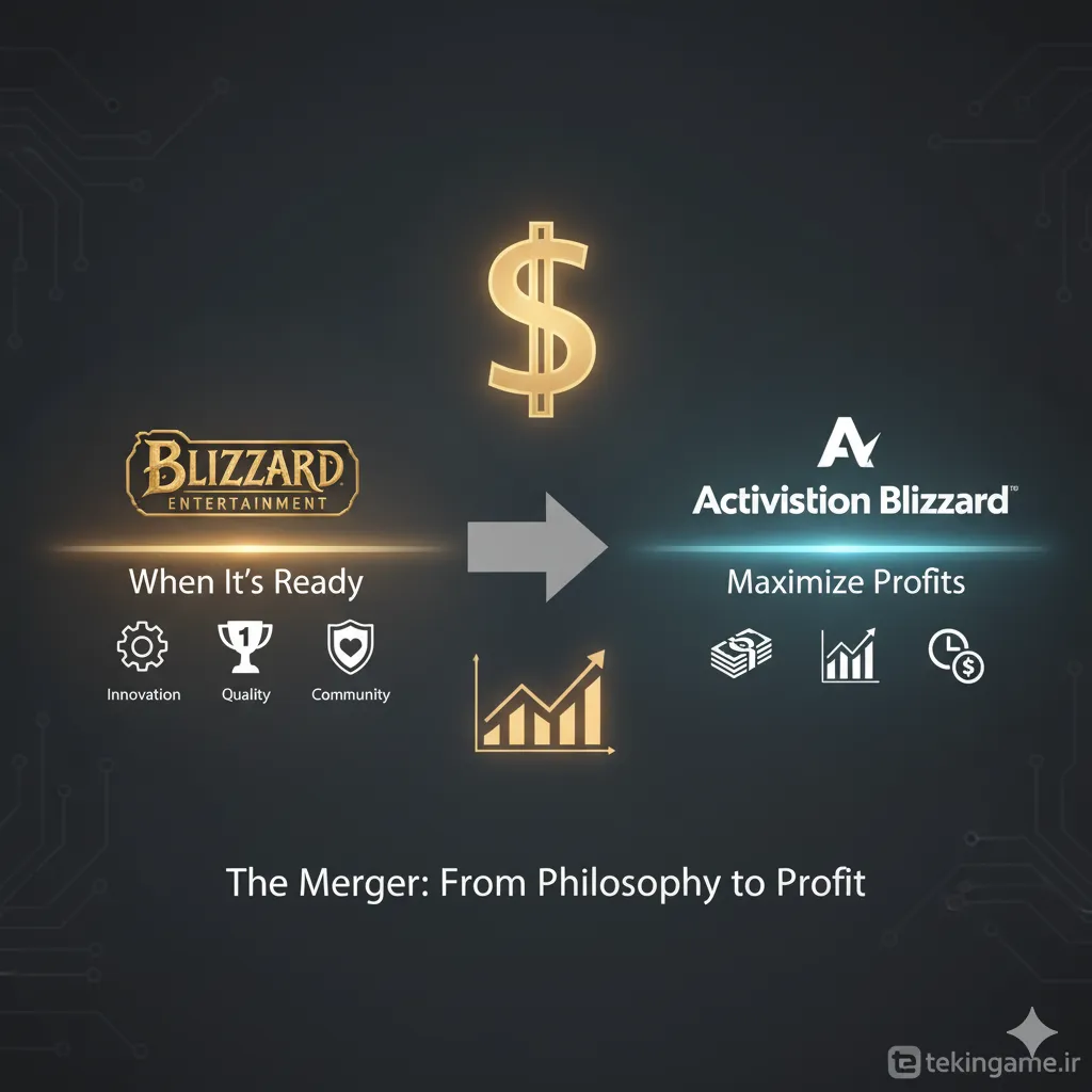 در سال ۲۰۰۸، Blizzard با Activision ادغام شد و Activision Blizzard تشکیل شد. در ابتدا، این ادغام تأثیر چندانی بر عملکرد Blizzard نداشت. StarCraft II (۲۰۱۰) و Diablo III (۲۰۱۲) هنوز کیفیت بالای مورد انتظار را داشتند، اگرچه Diablo III با مشکلات اولیه مواجه شد. Hearthstone (۲۰۱۴) نشان داد که Blizzard همچنان قابلیت نوآوری دارد. اما به تدریج، فشار برای سودآوری بیشتر و عرضه سریعتر محصولات شروع شد. فرهنگ شرکتی Blizzard که بر کیفیت و "when it's ready" متمرکز بود، با اهداف مالی Activision در تضاد قرار گرفت.