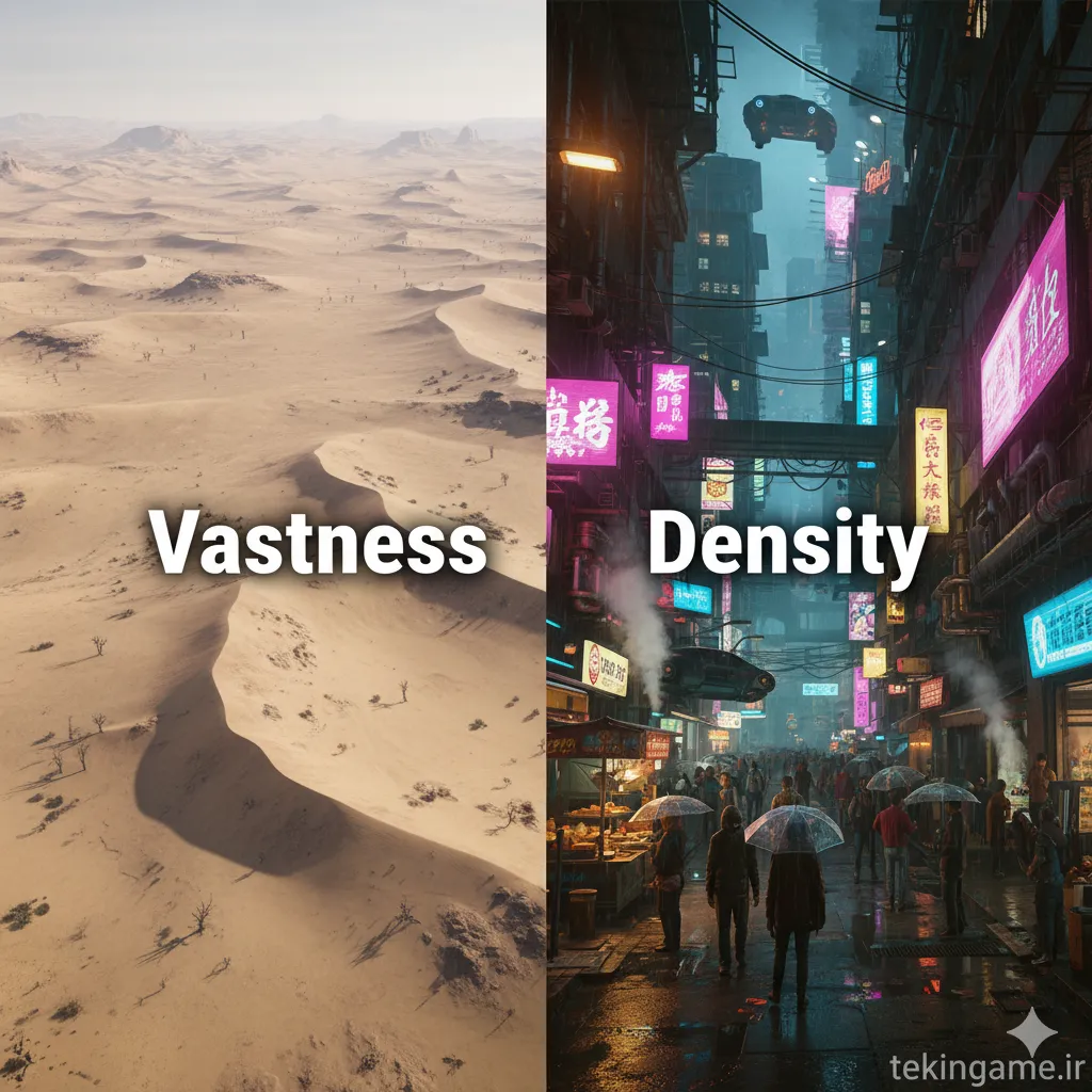 بزرگترین انتقادی که به بسیاری از بازیهای جهان-باز مدرن وارد میشود، همین است. توسعهدهندگان آنقدر بر روی "وسعت" نقشه تمرکز میکنند که از "عمق" محتوای آن غافل میشوند. نتیجه، دنیاهایی است که صدها کیلومتر مربع وسعت دارند، اما پر از فعالیتهای تکراری، مراحل فرعی بیهدف و فضاهای خالی و بیروح هستند. این دنیاها بیشتر شبیه به یک لیست بلند از کارها (Checklist) هستند تا یک مکان زنده و باورپذیر.