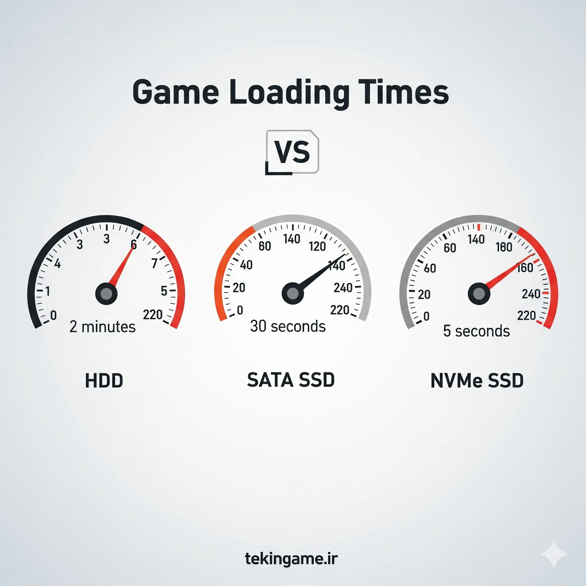 مهمترین مزیت SSD نسبت به HDD، سرعت فوقالعاده آن است. یک HDD معمولی سرعت خواندن ۱۰۰-۱۶۰ MB/s دارد، در حالی که یک SATA SSD میتواند تا ۵۵۰ MB/s برسد. اما NVMe SSDهای مدرن میتوانند سرعتهایی بیش از ۷۰۰۰ MB/s داشته باشند - یعنی ۷۰ برابر سریعتر از HDD! این تفاوت سرعت در گیمینگ به معنای زمان لود بسیار کمتر، انتقال سریعتر بین مناطق مختلف بازی، و حتی امکان streaming بافتها و asset های بازی به صورت real-time است. بازیهایی مانند Ratchet & Clank: Rift Apart روی PS5 نشان دادهاند که چگونه SSD سریع میتواند گیمپلی را متحول کند.