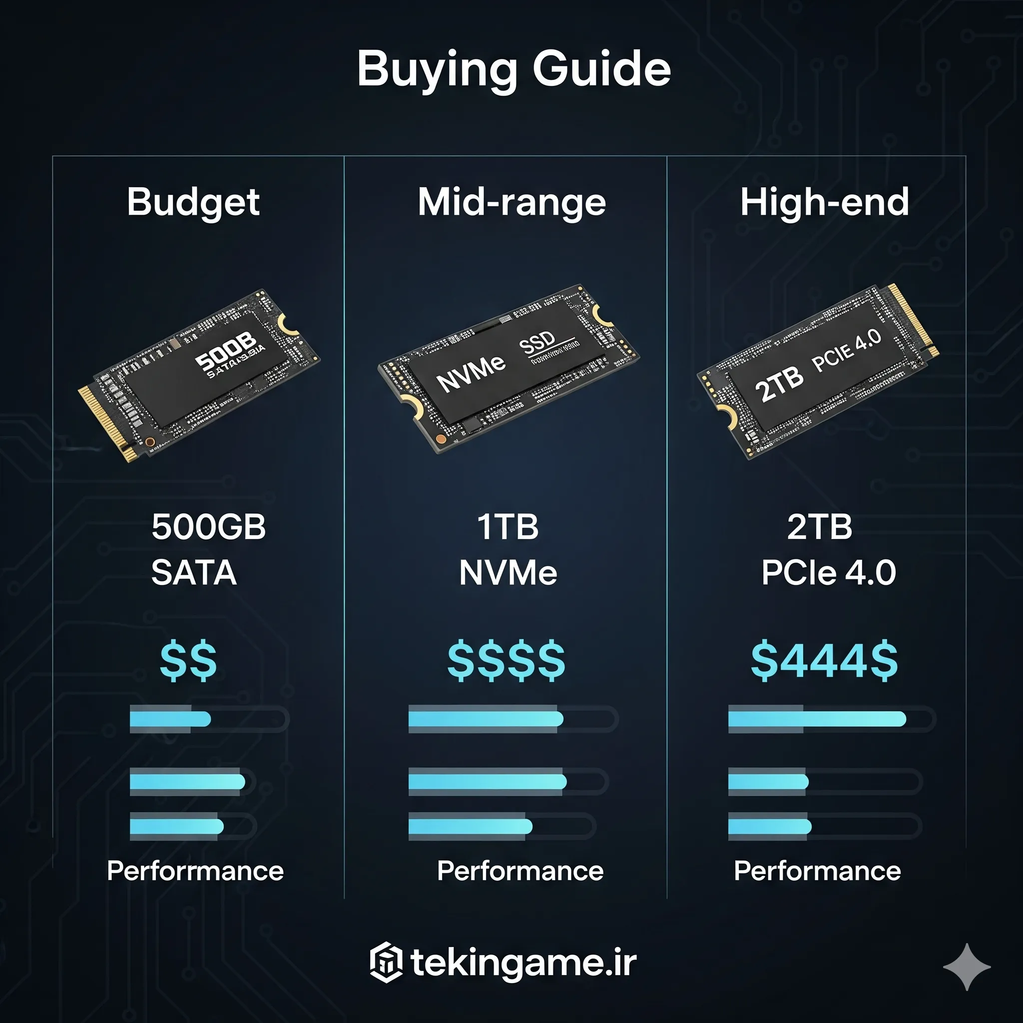 برای گیمرهای مختلف، توصیههای متفاوتی وجود دارد. اگر بودجه محدود دارید، یک SSD کوچک (۵۰۰GB-۱TB) برای سیستم عامل و بازیهای فعال، به همراه یک HDD بزرگ برای آرشیو، بهترین انتخاب است. گیمرهای حرفهای که به بهترین عملکرد نیاز دارند، باید روی NVMe SSD سرمایهگذاری کنند. برای کسانی که فضای زیادی نیاز دارند اما بودجه کافی ندارند، هارد دیسکهای بزرگ همچنان گزینه منطقی هستند. مهم این است که حداقل سیستم عامل و بازیهای اصلی روی SSD نصب شوند.