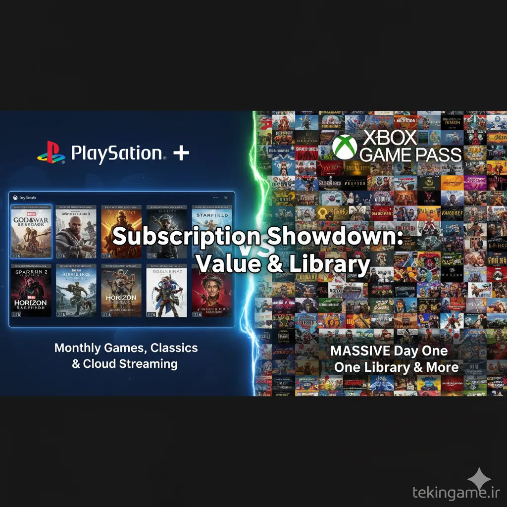 اینجا جایی است که Xbox Series X برتری مطلق دارد. سرویس Xbox Game Pass Ultimate با هزینهای ماهانه، دسترسی به صدها بازی باکیفیت، شامل تمام انحصاریهای مایکروسافت، بازیهای EA Play و قابلیت بازی ابری (Cloud Gaming) را فراهم میکند. سونی نیز با سرویس جدید PlayStation Plus در سه سطح Essential، Extra و Premium به رقابت پرداخته است. سطح Premium شامل کاتالوگ بزرگی از بازیهای PS4 و PS5 و همچنین بازیهای کلاسیک نسلهای قبل است، اما همچنان از نظر ارزش، با Game Pass فاصله دارد.