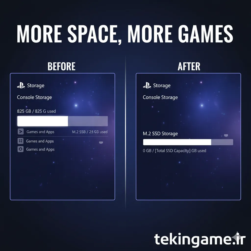 PS5 پس از فرمت، آزمون سرعت انجام میدهد. اگر سرعت کمتر از انتظار بود، از نصب صحیح هیتسینک و تماس مناسب پد حرارتی مطمئن شوید. در تستهای عملی، زمان لودینگ نزدیک به حافظه داخلی است؛ مزیت اصلی، ظرفیت بیشتر و حفظ سرعت پایدار در انتقالهای طولانی است.