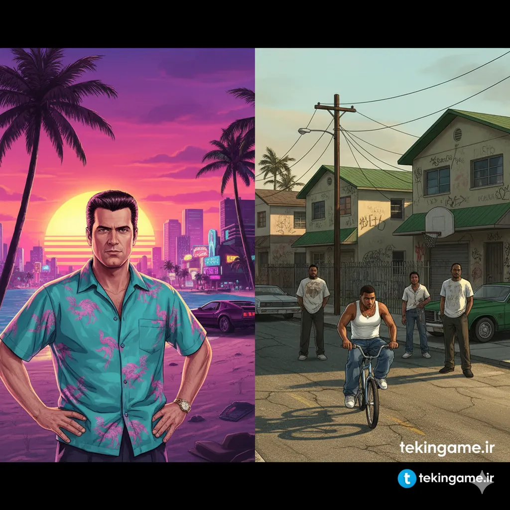 GTA: Vice City با الهام از فیلمهای گانگستری دههی ۸۰ مانند Scarface، شما را به شهری نئونی و پر از موسیقی برد. داستان جذاب و اتمسفر فوقالعاده، این نسخه را به یکی از محبوبترین عناوین سری تبدیل کرد. دو سال بعد، GTA: San Andreas با نقشهای بسیار بزرگتر، سه شهر، المانهای نقشآفرینی مانند شخصیسازی ظاهر و مهارتها، و داستانی حماسی در مورد جنگ گنگها، این سری را به اوج خود رساند.