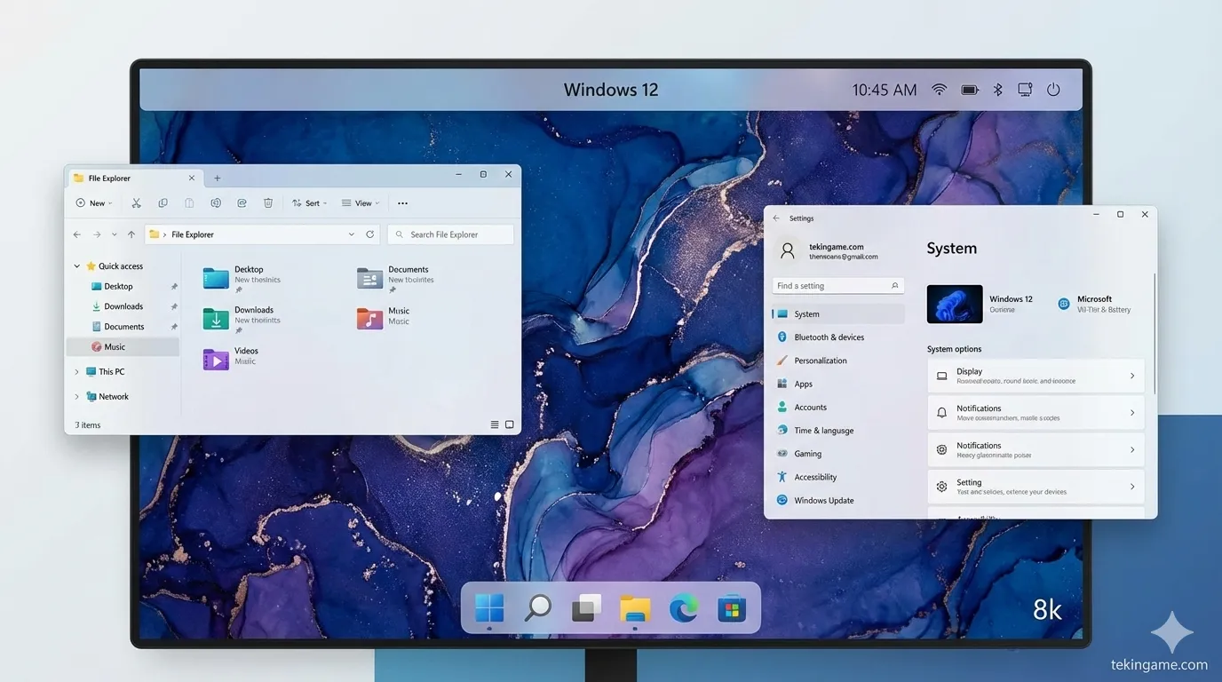 Visually, Windows 12 is moving towards a design language rumored to be called "Oxygen." The most controversial change is the Floating Taskbar. Instead of being glued to the bottom bezel, the taskbar floats slightly above the bottom of the screen with rounded corners, similar to macOS or iPadOS.